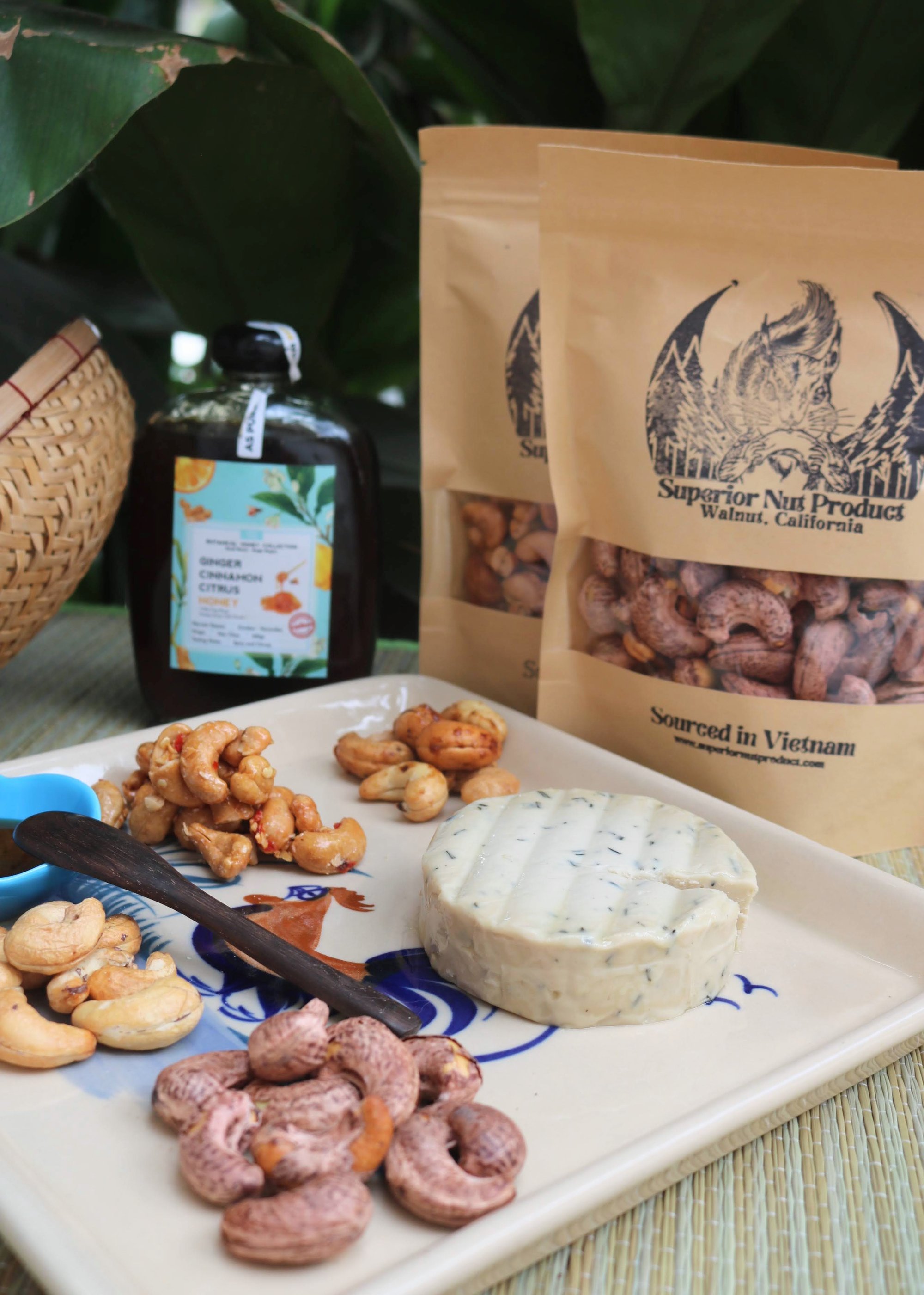 Our specialty every Christmas season is the Superior Nut Product Christmas Hamper. In it, you'll find a selection of products that can showcase the varied flavours of Vietnam that are ideal for entertaining during the holiday season. With each set you'll receive in a bamboo basket the following: